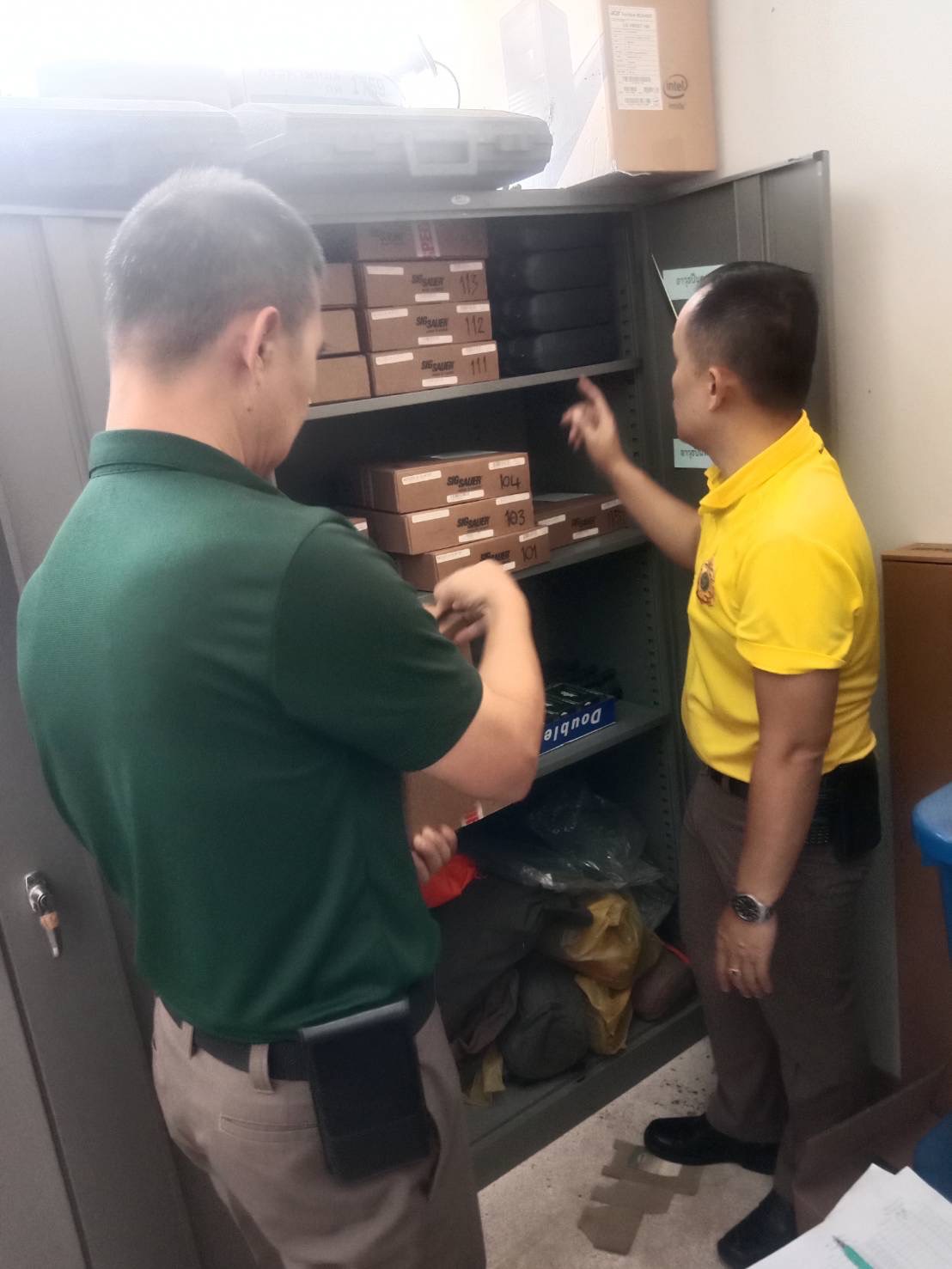ร่วมตรวจห้องเก็บอาวุธและได้ทำการตรวจอาวุธข้าราชการตำรวจ สภ.บ้านเดื่อ